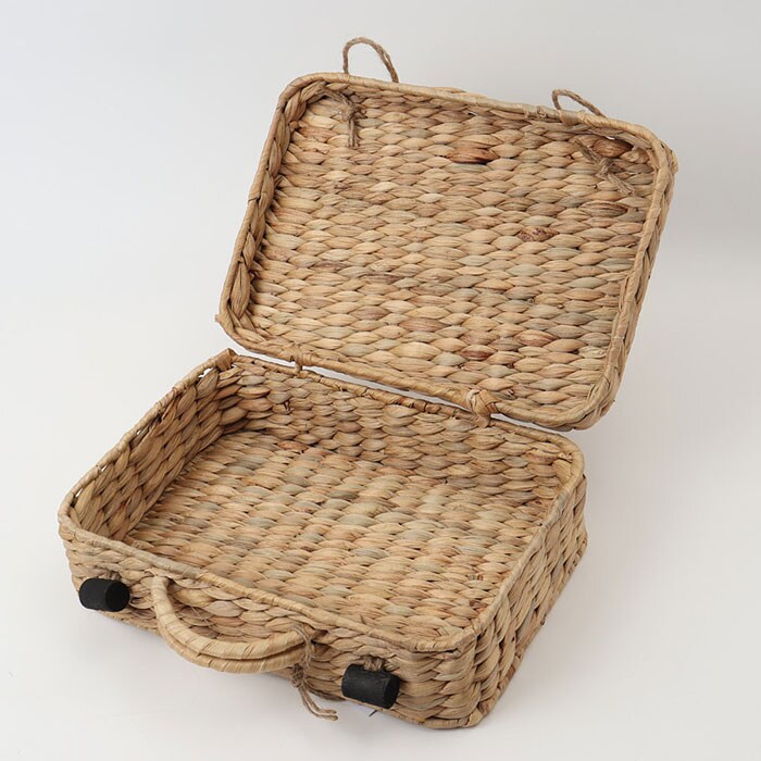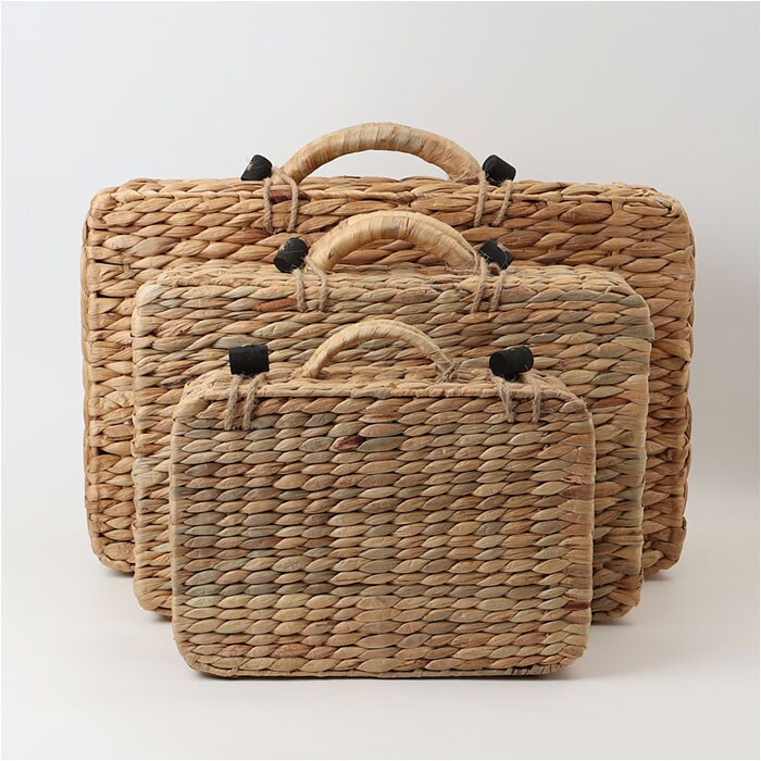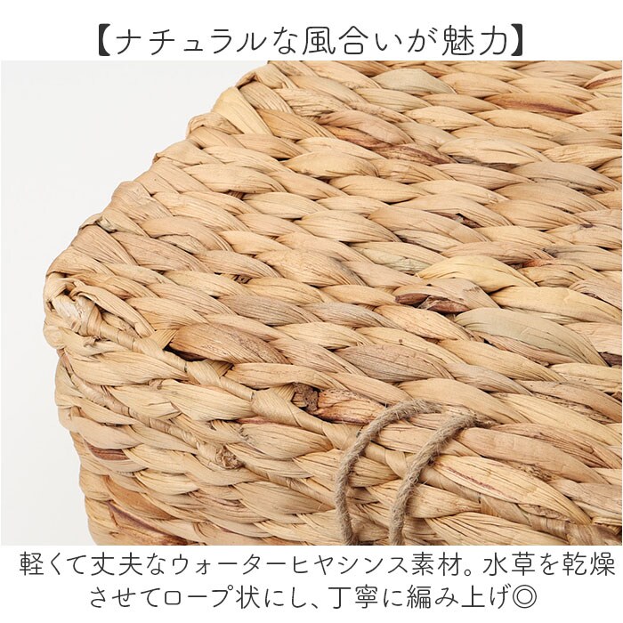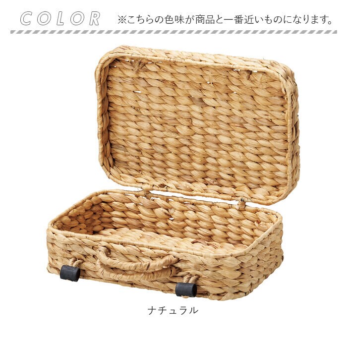 | 商品説明 | 【色んなシーンをおしゃれに演出】使い方いろいろ☆見た目も可愛らしい「バスケット トランク型 S」。【ピクニックの雰囲気を格上げ】ピクニックグッズを入れて、公園などへ♪置いておくだけでも映えるデザイン。【撮影小物やインテリア使いも】ロケーションフォトやウェルカムスペースの飾りに。お子さまのメモリアルボックスとしても!【ナチュラルな風合いが魅力】軽くて丈夫なウォーターヒヤシンス素材。水草を乾燥させてロープ状にし、丁寧に編み上げ◎(※)ウォーターヒヤシンスは東南アジアの川や湖などに生息する、熱帯性植物。手作り品のため、個体差がございます。【留め具に引っ掛けて簡単クローズ】・2箇所の留め具に、紐を引っ掛けるだけ。パカパカせず、中身が飛び出す心配も不要。【移動や持ち運びもラクラク】持ち手の付いたトランク型。サッと手に取れて、使いやすいSサイズ。 |