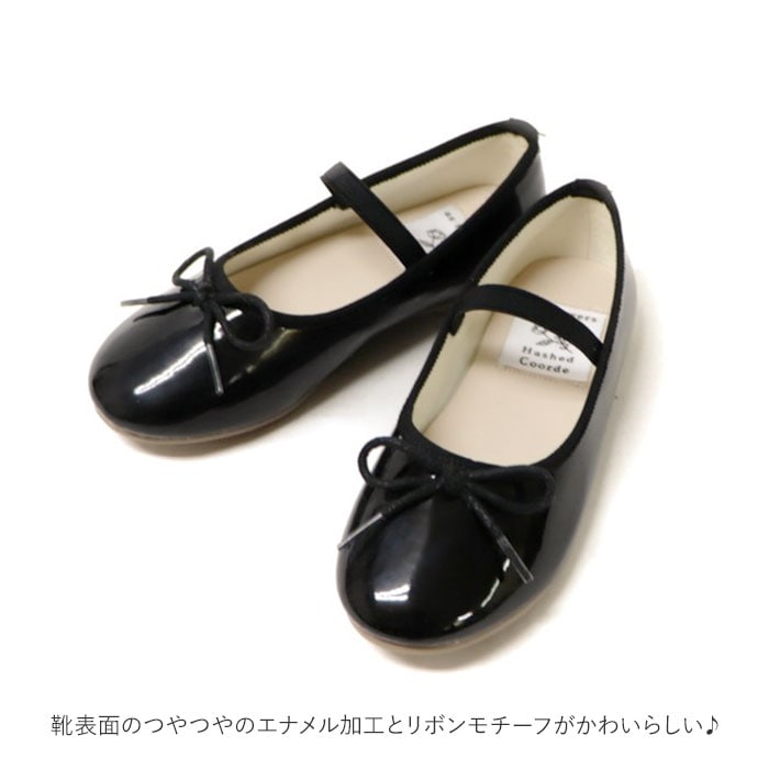 | 商品説明 | ナチュラルでリラックスできる靴Hashed Coorde(ハッシュドコーデ)よりキッズ用バレエシューズが新登場。靴表面のつやつやのエナメル加工とリボンモチーフがかわいらしいデザイン♪ゴムバンド付きだから甲にしっかりフィットしお子様が走っても脱げにくく履きやすい。中敷はクッション性のある柔らかい質感で履き心地快適。靴底は摩擦に強く、耐水性に優れている合成底。お洋服を選ばないシンプルさが発表会や結婚式などのフォーマルシーンで大活躍。 |