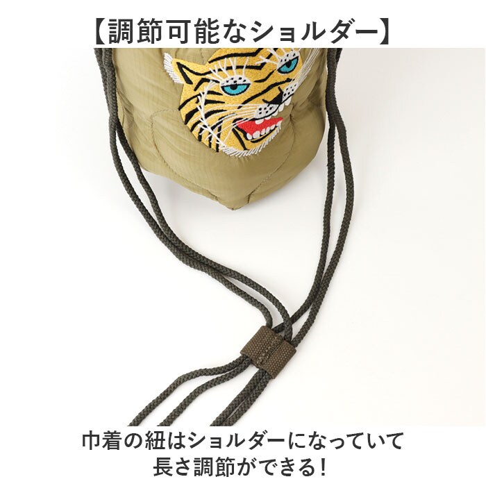 | 商品説明 | 【個性際立つ刺繍デザイン】ヴィンテージベトジャンをイメージした存在感抜群の刺繍キルティングバッグ◎【軽さと使いやすさを両立】軽量設計で手提げも肩掛けも自在な2WAY仕様♪【コンパクトで丁度良い】ちょっとした荷物を入れるのに最適なサイズ〇【キルティングの立体感】ひょうたんキルトのボリューム感が可愛い見た目。【開け閉め簡単】巾着開口でキュッと閉めれば中身も飛び出さない。【調節可能なショルダー】巾着の紐はショルダーになっていて長さ調節ができる! |