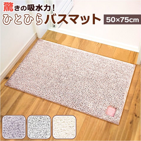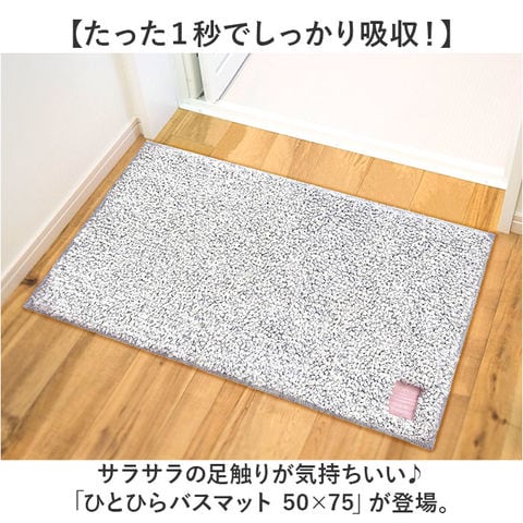 商品説明【たった1秒でしっかり吸収!】サラサラの足触りが気持ちいい♪「ひとひらバスマット 50×75」が登場。【驚きの吸収力を発揮!】滴下後たった1秒で水を吸う、驚きの吸収力!独自の吸水パイルでいつでもサラサラをキープ♪【足裏が喜ぶサッパリした肌触り】軽い紙のようなサラっとタッチがたまらない!入浴後のサッパリ感が続く、クセになる感触。【抗菌、防臭仕様で清潔に保つ】家族みんなで使ってもべっちょり感なし◎抗菌、防臭仕様だから洗面所はいつでも清潔!【エアリーな踏み心地が気持ちいい】ぼどよく厚みのある高密度ループが、快適な踏み心地を実現。ふんわりエアリーが気持ちいい。【インテリアに馴染むおしゃれさ☆】どこに置いても様になる、ちょっと和を感じるスタイリッシュなデザイン!リビングや玄関にも◎【安心の滑り止め加工】お子様やご年配の方の使用も安心の、滑り止め加工済み!ズレを気にせずに使える。