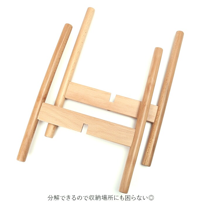 | 商品説明 | シンプルかつコンパクトなデザインのフラワースタンドが新登場。天然素材を使用し、ナチュラルな風合いがお花やインテリアの雰囲気を壊さずマッチしてくれる。2通りの置き方ができるため、植木鉢や植物の高さに合わせて使えるのも嬉しい。くぼみを合わせて、ネジで固定するだけの簡単組み立て。分解もできるため、収納場所にも困らない。滑り止めシールと届いてからすぐ組み立てられる六角レンチとネジ付き。6号までの植木鉢に対応。 |