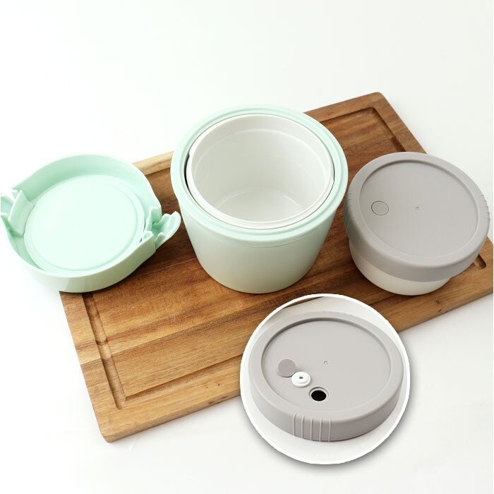 | 素材 | [保温ケース]ステンレス鋼(アクリル樹脂塗装) [保温ケースフタ]ポリプロピレン [止め具・リング]ポリプロピレン [おかず容器本体・ごはん容器本体・中フタ・弁本体]ポリプロピレン [パッキン・弁]シリコーンゴム |