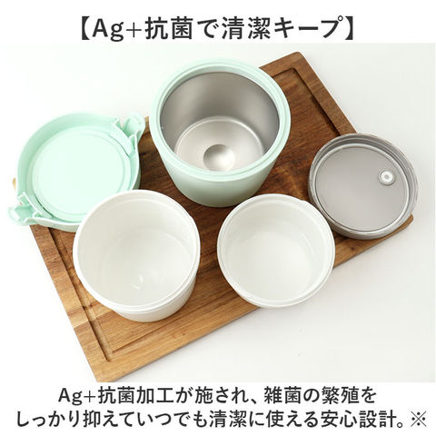 | 商品説明 | 【あったかごはんでカフェランチ】いつでも「温かい」を持ち運べる保温お弁当箱「ランタス カフェ丼ランチ」【真空断熱でおいしさ長持ち】ステンレス製真空断熱構造で、寒い日も飯の温かさをキープする保温力。【どんぶり型で使いやすい】カフェ風のおしゃれなどんぶり型デザインで、ごはんもおかずもたっぷり入る。【電子レンジ&食洗機OK】各フタを外せば電子レンジで温め直しOK、丸洗いOKの食洗機対応で毎日のお手入れ楽々。【Ag+抗菌で清潔キープ】Ag+抗菌加工が施され、雑菌の繁殖をしっかり抑えていつでも清潔に使える安心設計。※保温ケース、パッキン、弁除く【多彩なメニューに対応】おかず容器とごはん容器で使い方自由自在、丼ものからカフェ飯まで多彩なメニューに対応! |
