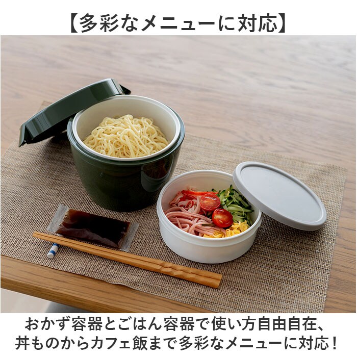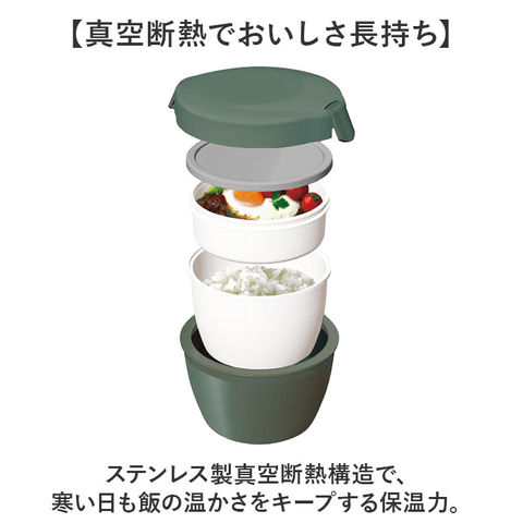 | 商品説明 | 【あったかごはんでカフェランチ】いつでも「温かい」を持ち運べる保温お弁当箱「ランタス カフェ丼ランチ」【真空断熱でおいしさ長持ち】ステンレス製真空断熱構造で、寒い日も飯の温かさをキープする保温力。【どんぶり型で使いやすい】カフェ風のおしゃれなどんぶり型デザインで、ごはんもおかずもたっぷり入る。【電子レンジ&食洗機OK】各フタを外せば電子レンジで温め直しOK、丸洗いOKの食洗機対応で毎日のお手入れ楽々。【Ag+抗菌で清潔キープ】Ag+抗菌加工が施され、雑菌の繁殖をしっかり抑えていつでも清潔に使える安心設計。※保温ケース、パッキン、弁除く【多彩なメニューに対応】おかず容器とごはん容器で使い方自由自在、丼ものからカフェ飯まで多彩なメニューに対応! |