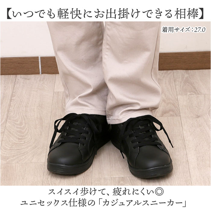 | 商品説明 | 【いつでも軽快にお出掛けできる相棒】スイスイ歩けて、疲れにくい◎ユニセックス仕様の「カジュアルスニーカー」。【軽やかでストレスフリーな履き心地】驚きの軽さを実現し、足への負担を軽減。足さばきがスマートで、アクティブに動く日にも最適。【フィット感を高めるシューレース】紐の結び具合で多少のサイズ調節が可能。シューズと足が一体化するような着用感。【足当たりが優しく靴ズレをガード】柔らかく、ふんわりクッション性のある履き口まわり。足首を支えて、気になる靴ズレも防ぐ◎【安定感のある歩行をサポート】つま先部分が上向き形状で、蹴り上げやすくつまずきにくい!底面凹凸加工のフラットソール。【足元をさりげなくお揃いに☆】カジュアルコーデに素敵にマッチ。豊富なサイズ展開で、夫婦やカップルお揃いもおすすめ。 |