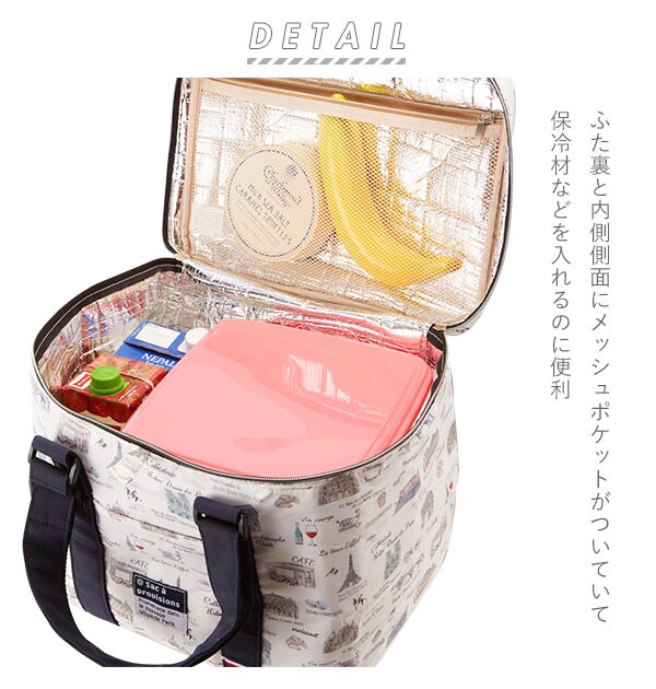 | 商品説明 | たっぷり大容量のスクエア型保冷保温レジャーバッグです。内側がアルミ蒸着フィルムで加工されているため、お弁当などの温かいものや、冷たい飲み物のペットボトルなどの持ち運びにぴったり。上部フタの内側と、内側側面にはメッシュポケットがついており、保冷剤を入れるのにも便利です。お買い物カゴにすっぽりと入る大容量Lサイズなので、卵のパックや生鮮食品もたっぷり入ります。さらに2リットルのペットボトルが6本収納可能!持ち手を束ねるマジックテープ式のベルトもついて、重い物を持ち運ぶ際の手の負担を軽減します。普段のお買い物はもちろん、ピクニックや運動会のお弁当など、レジャーにも幅広く活躍しそうなアイテムです。 |