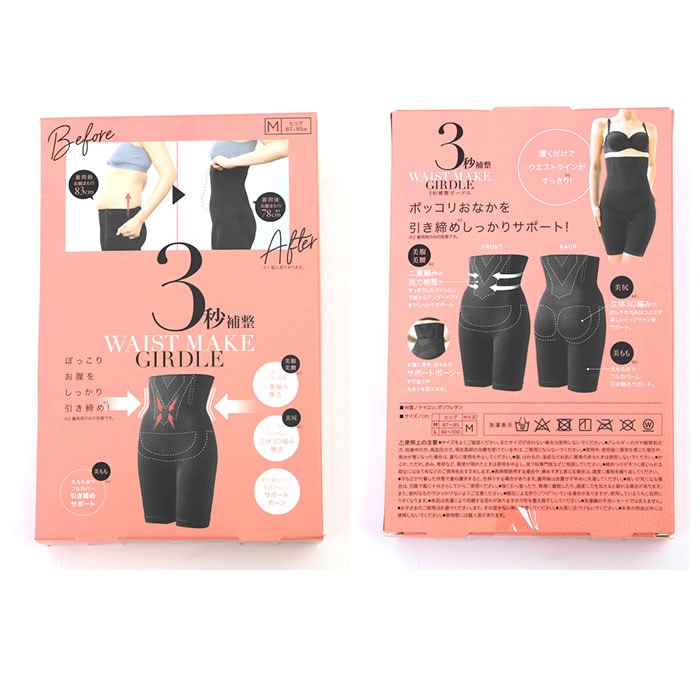 | 商品説明 | 3秒細見え♪ウエストラインから太ももまで引き締めサポートしてくれる、補整ガードル。ぽっこりお腹を引き締め、くびれをメイクするハイウエスト仕様。気になるウエスト・下腹・ヒップライン・太ももををスッキリと魅せてくれる♪お腹周りは二重編み構造で強力補整!下腹からアンダーバストまでをしっかりサポート。お尻周りは立体3D編みになっており、お尻の丸みは保ちつつ、美しいヒップラインに♪お腹と背中に計4本のサポートボーン入りで、ずり落ちや丸まりを抑えてくれる。太ももまでしっかりカバーした仕様で、フルサポート!着用するだけで体をスッキリと魅せてくれるので、忙しい毎日でも気軽に使えるアイテム。 |