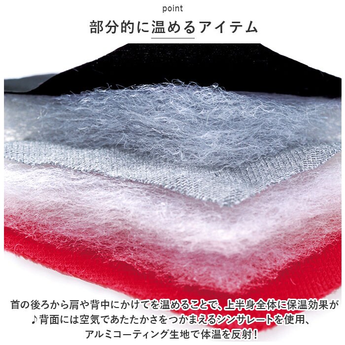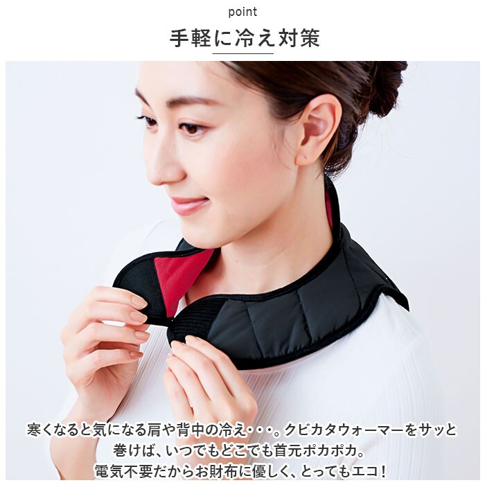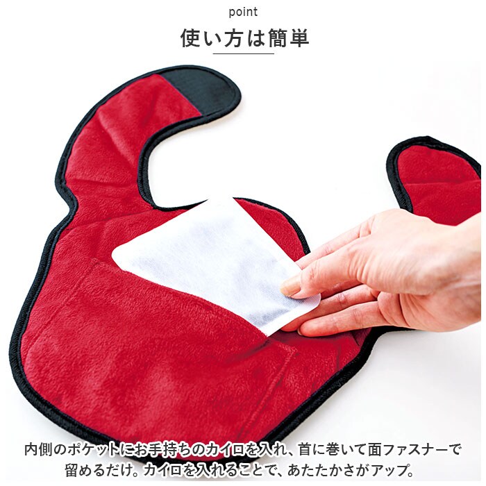 | 商品説明 | 首と肩がポカポカ♪寒い季節のお助けアイテム「ホットレスト クビカタウォーマー」が新登場。【手軽に冷え対策】寒くなると気になる肩や背中の冷え・・・。クビカタウォーマーをサッと巻けば、いつでもどこでも首元ポカポカ。電気不要だからお財布に優しく、とってもエコ!【部分的に温めるアイテム】首の後ろから肩や背中にかけてを温めることで、上半身全体に保温効果が♪背面には空気であたたかさをつかまえるシンサレートを使用、アルミコーティング生地で体温を反射!【使い方は簡単】内側のポケットにお手持ちのカイロを入れ、首に巻いて面ファスナーで留めるだけ。カイロを入れることで、あたたかさがアップ。【柔らかな肌触り】内側はしっとりとした起毛素材で、肌あたりが心地良い!表面はブラック、裏面はレッドに仕上げ、カラーのコントラストも楽しめちゃう◎【お手入れラクラク】汚れが気になったら、自宅で手洗いOK。いつも清潔をキープ。【ながらケアにおすすめ】軽量で着ぶくれの心配も不要な生地感。家事や仕事中も動きを妨げず、サクッと防寒対策。 |