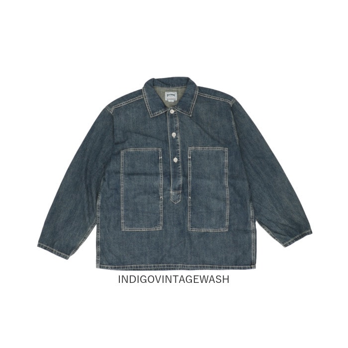 HOUSTON USA COTTON DENIM ARMY PULLOVER SHIRT 40696【INDIGOVINTAGEWASH】【Lサイズ】