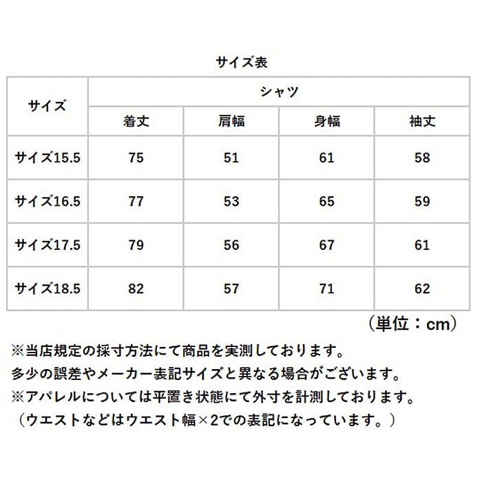 | サイズ | [メンズ] ・サイズ15.5 ・サイズ16.5 ・サイズ17.5 ・サイズ18.5 ※サイズについて詳細は、商品画像の中にあるサイズ表をご覧くださいませ。 |