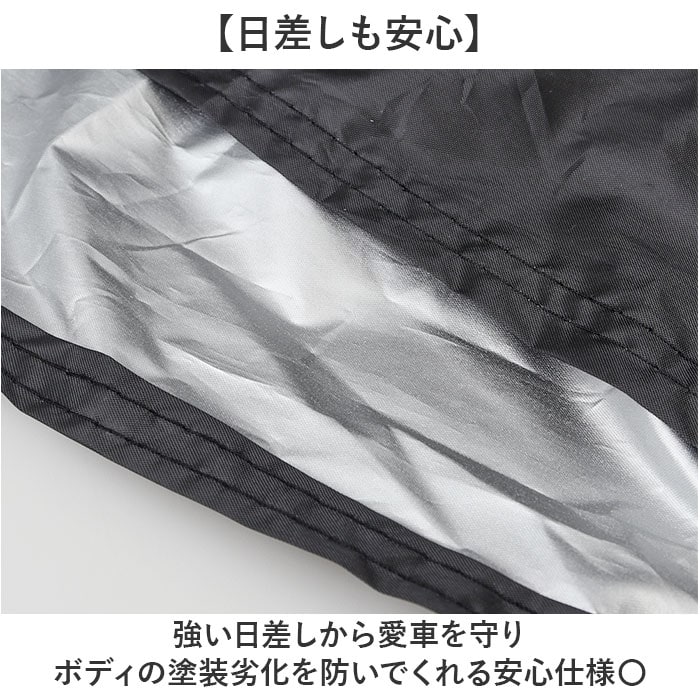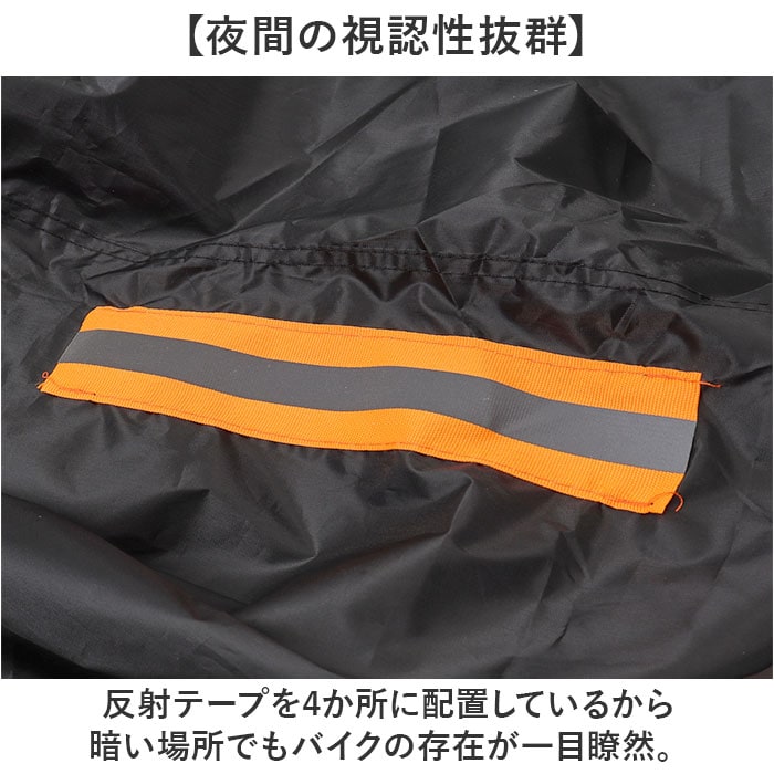 | 商品説明 | 【愛車を守る】ホコリや汚れからしっかり保護してくれる頼れるバイクカバー!【雨も安心】撥水加工を施しているから雨水をしっかり弾いて愛車を守る◎【日差しも安心】強い日差しから愛車を守りボディの塗装劣化を防いでくれる安心仕様〇【夜間の視認性抜群】反射テープを4か所に配置しているから暗い場所でもバイクの存在が一目瞭然。【風に負けない設計】バックルと絞りゴムで強風時のバタつきを抑える仕様♪【持ち運びも楽々】専用の収納袋付きだからコンパクトに畳んで保管や持ち運びができて便利〇【サイズが選べる】幅広いサイズ展開だから様々な車種にしっかり対応◎ |