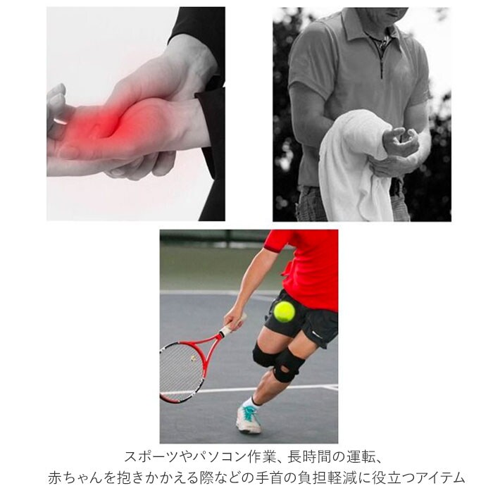 | 商品説明 | 手首の負担を軽減できる、手首サポーター。手首にフィットするよう設計された2つのアルミ合金プレート入り。プレートで支えながら手首を固定することで、無駄な動きを防いでくれる。プレートは取り外し可能なので、用途に応じて使い分けできるのが嬉しい。3箇所に配置された面ファスナーで、締めつけ感を調節可能。さらに滑り止め付き圧力調節ベルトを巻き付ければ、ズレにくく固定力もアップ!表面は通気性のよいメッシュ仕様になっているので、暑い季節や運動中もムレにくく快適◎汗が気になったら、プレートを抜いてご自宅で優しく手洗い可能。右手用、左手用それぞれ3サイズをラインナップ。スポーツやパソコン作業、長時間の運転、赤ちゃんを抱きかかえる際などの手首の負担軽減に役立つアイテム。 |