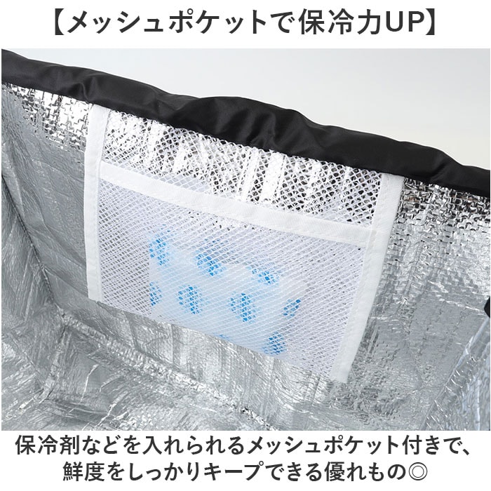 | 商品説明 | 【レジカゴにぴったりな保冷バッグ】買い物もレジャーも、自立して使いやすい保冷仕様のショッピングバッグ。【スーパーで楽々お買い物】レジカゴにぴったり収まるサイズで、お会計後の袋詰めがスムーズに◎【出し入れラクラク】しっかり自立するから、食材やペットボトルの出し入れがストレスフリーで使い勝手が良い〇【保冷機能付き】内側にアルミシートを使用した保冷仕様で、冷凍食品や生鮮食品を安心して持ち帰れる♪【メッシュポケットで保冷力UP】保冷剤などを入れられるメッシュポケット付きで、鮮度をしっかりキープできる優れもの◎【巾着式で目隠し効果】開け口は巾着タイプだから、プライバシーを守りながら中身をしっかりホールドできる〇【撥水加工で雨の日も安心】表面に撥水加工を施しているから、突然の雨でも中身を濡らさず守ってくれる。【コンパクトに折りたたみ可能】使わない時は小さく畳んでバッグに収納できるので、持ち運びに便利でいつでも携帯できる! |