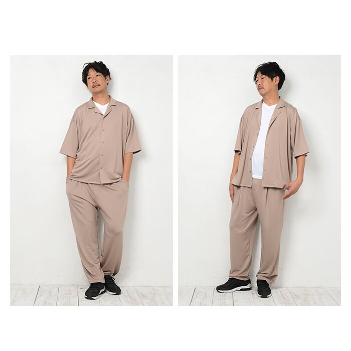 高撥水 男女兼用 オープンカラー セットアップ【モカ】【LL-3Lサイズ】