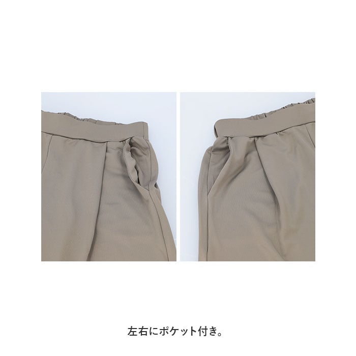| 商品説明 | カジュアルさの中にきちんと感をプラス!レディース用テーラードセットアップが新登場。ゆったりとしたシルエットで、ストレスフリーな着心地!水滴をサッと弾く高撥水生地を使用。約100回洗濯しても、撥水効果が持続◎(※濡れた状態で放置することはお避けください。)シワになりにくい素材でお手入れがラクチン!ジャケットは、スーツのように仕立てられたテーラードデザイン。お手持ちのシャツなどと合わせるだけで、きちんと見えしつつも堅苦しくなりすぎない印象に。ボトムスは気になる太ももまわりをカバーできるワイドタイプ。左右外側の裾元にスリット入り。抜け感のある自然なフレアシルエットがポイント。締めつけ感のないウエストゴム(バックギャザーゴム)仕様。トップスをインしても、フロントからの見た目がスッキリ◎左右にポケット付き。ルームウェア、旅行時のリラックスウェアとして大活躍!テレワーク用にもぴったり。予備ボタン×1が付属。 |