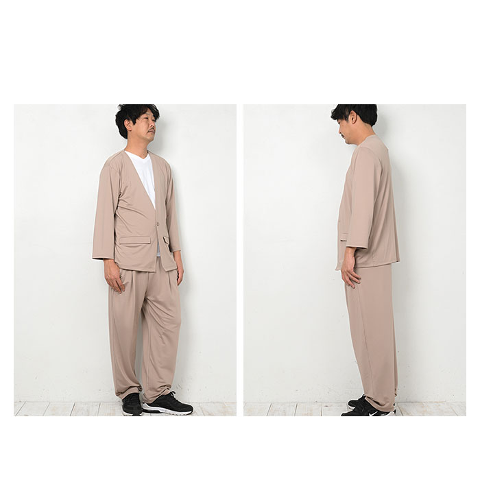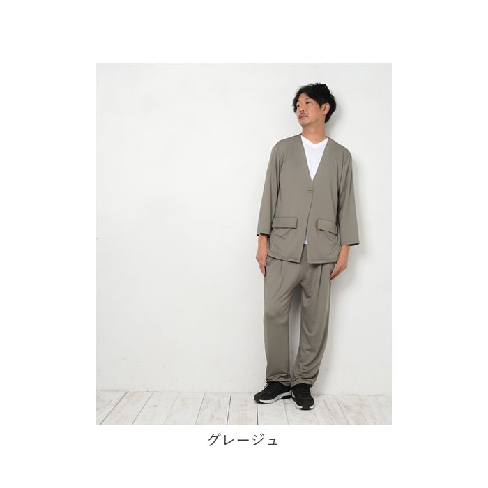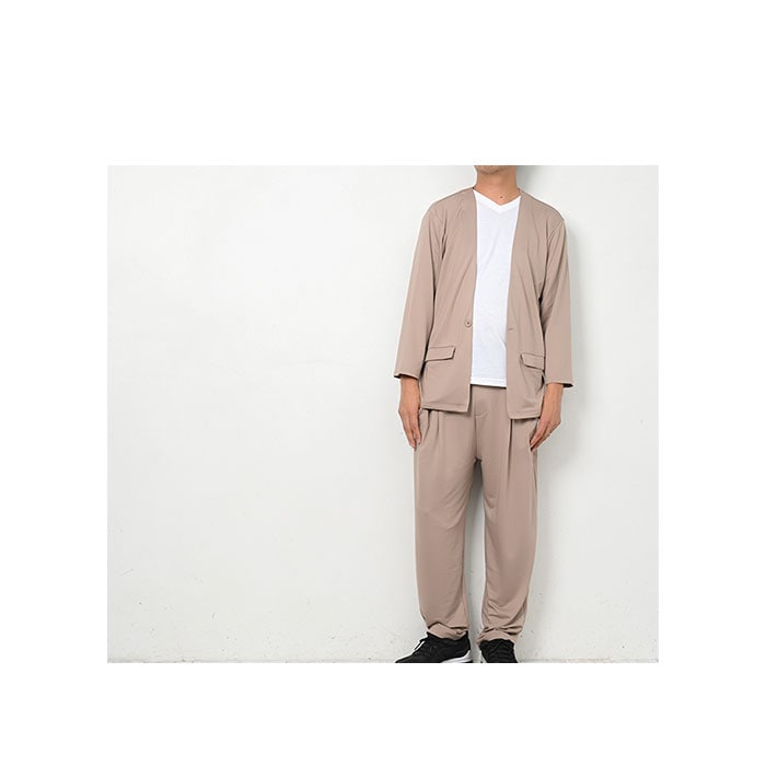 高撥水 メンズ ノーカラーセットアップ【グレージュ】【LL-3Lサイズ】