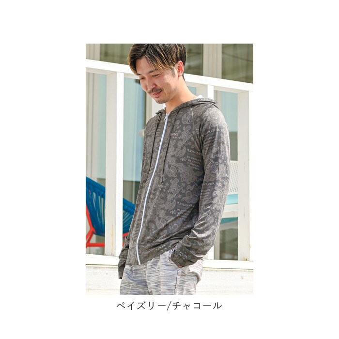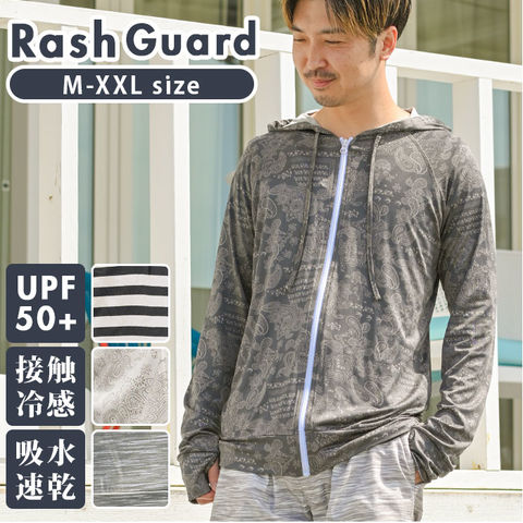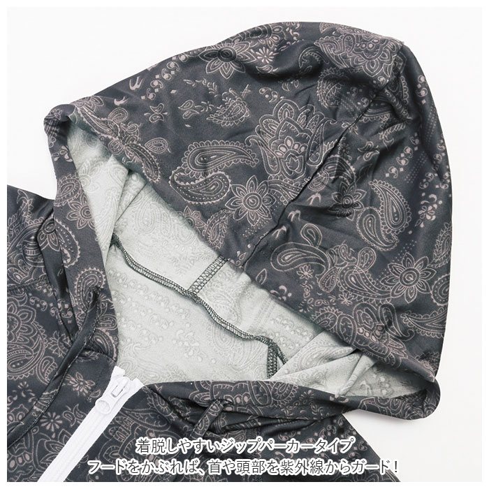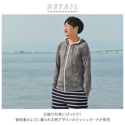 | 商品説明 | 日焼け対策にぴったり!普段着のように着られる、柄デザインのラッシュガードが発売。紫外線防止指数は最高値のUPF50+!(※オーストラリア・ニュージーランド基準での数値です。)汗で濡れても、洗濯しても乾きやすい吸水速乾性機能。Q-max値0.2以上の接触冷感タイプ!触れるとひんやり冷たく、暑い季節に最適。ストレッチ性に優れているので、動きやすさも抜群。さらにシワになりにくく軽量で持ち運びしやすい♪着脱しやすいジップパーカータイプ。フードをかぶれば、首や頭部を紫外線からガード!袖には親指を通せるフィンガーホール付きで、手の甲まで日焼け対策が可能。海水浴、プール、登山、釣り、ランニングなど幅広いシーンで活躍。 |