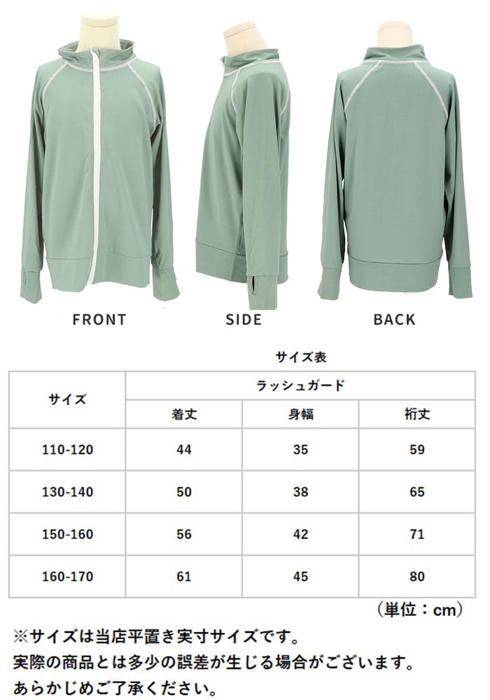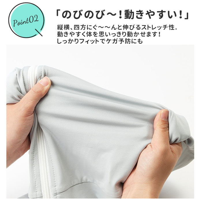 | 商品説明 | アウトドアでのケガ予防、日焼け対策に!キッズ用ジップパーカータイプのラッシュガードが新登場。着脱しやすいジップパーカー。袖口に設計されたサムホールに親指を通せば袖がずり上がり防止に。紫外線防止数は最高値のUPF50+(オーストラリア・ニュージーランド基準)肌に触れるだけでひんやり冷たいQ-max0.2以上の接触冷感素材。汗をかいても乾きやすい吸水速乾機能で快適な着心地を継続。縦横、四方に伸びる伸縮性にも優れ動きやすい。シワになりにくく軽量なつくりだから持ち運びもしやすい。 |