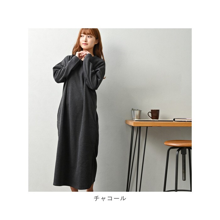 | 商品説明 | ストレスフリーな着心地♪裏起毛で仕上げた、Vネックマキシワンピース。肌触りが気持ちいいポリエステル100%素材。シワになりにくいのもポイント。程よい厚みのふわさら裏起毛素材を使用しているから、冬でもポカポカ♪お顔まわりをスッキリと魅せてくれる、Vネックデザイン。頭からすっぽりかぶれて着替えがラクラク。左右に便利なポケット付き。ゆるっと着られるワンピースは、ルームウェアとしても大活躍! |