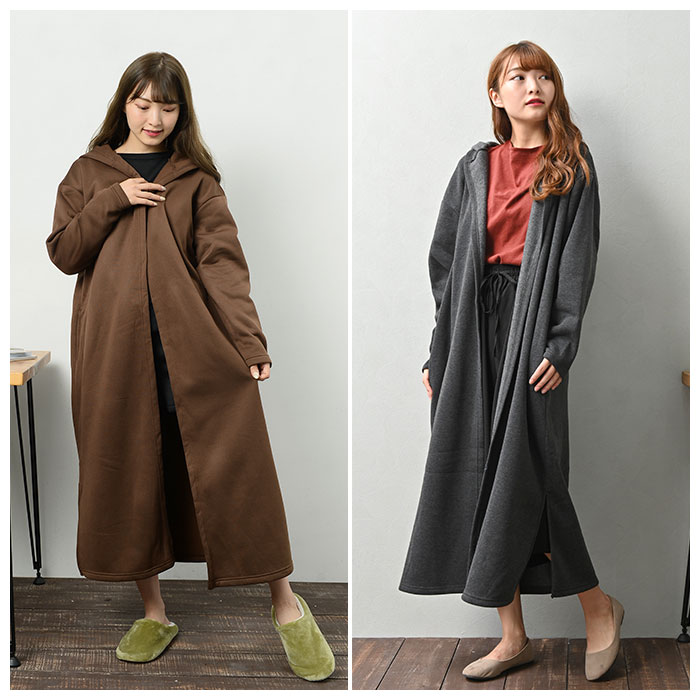 | 商品説明 | お家でも外でも使える♪ゆったりロング丈のアウター。薄手のダンボールニット素材で軽量・伸縮性・上品な光沢とハリが特徴。裏地は起毛素材なので、冬もあったか♪ゆったりオーバーサイズで、両サイドにスリットが入ったロングコート。冬はルームウェアの上からカーディガンのように羽織れる、長いお家時間にぴったりなアイテム。お家の中だけでなく、お子様の送迎や近所への買い物の際にもサッと羽織れて便利。左右にポケット付きなのもうれしいポイント。 |