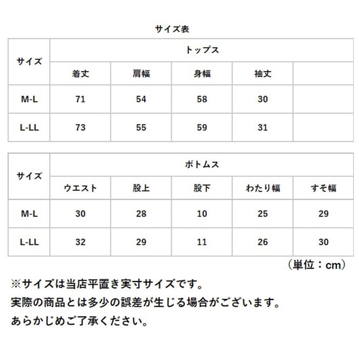 | 重量 | 約318g(※M-Lサイズ上下セットの重量になります。) |