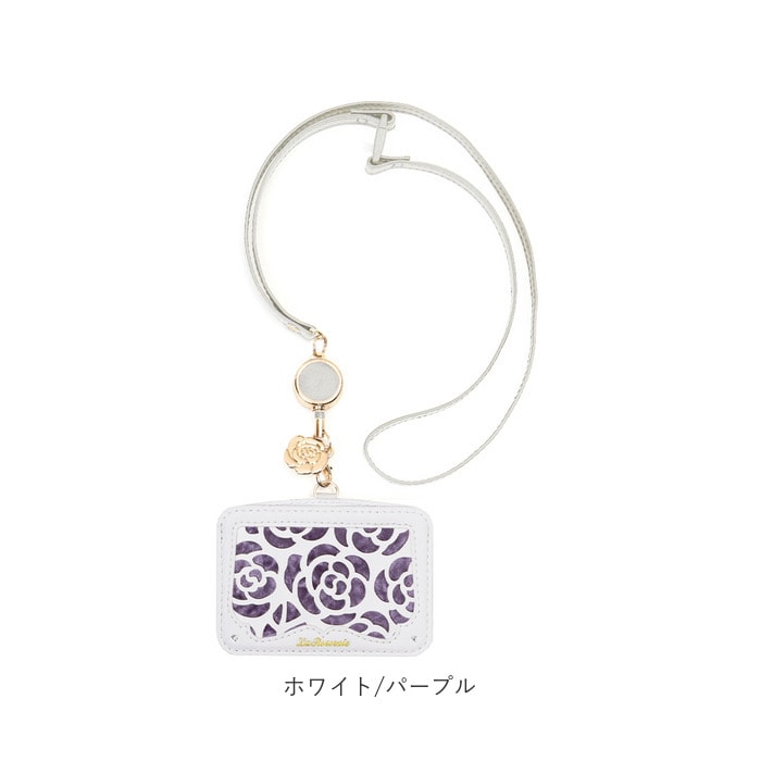 La Roseraie ラ・ロズレ パスケース/IDカードホルダー【ホワイト/パープル】【IDカードホルダー】