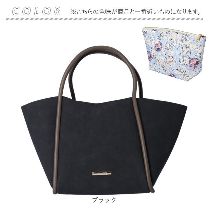 商品説明【オフィスやキレイめコーデに】シンプルでエレガントなデザインが嬉しいLAURA ASHLEYのポーチ付きトート。【Laura Ashley】花柄やフェミニンなシルエットのデザインが特徴的なアイテム展開で英国を代表するブランド。【花柄のポーチ付き】華やかさが特徴的なフラワーのプリントデザイン♪大きめのサイズでバッグインでも使える♪【ゴールドパーツで上品さアリ】生地はスエード調の合皮を採用。ゴールドカラーの金具を使用し、カジュアル過ぎず上品さも。【A4サイズ対応】オフィスやビジネスシーンにも便利なA4サイズ対応。大事な書類をそのままIN!【かさばりがちなノートやポーチ】マチ幅があり、かさばりがちなノートやポーチもまとめて収納できるのも嬉しいポイント。【自立し倒れにくい】しっかりとしたつくりと、広めのマチで安定した自立が可能。サッと置いても倒れにくい。【オープンポケット付き】カバンの中で迷子になりがちな小物を入れるのにピッタリなオープンポケット付き。【掃除しやすい底板】底板はバッグの中が掃除しやすいよう、取り外し可能♪お手入れが楽ちん。【コーデが引き締まるデザイン】ラフ過ぎない上品なデザインのバッグ。シックな印象でコーデがグッと引き締まる!【ポケット仕様】オープンポケット×1、バッグインポーチ