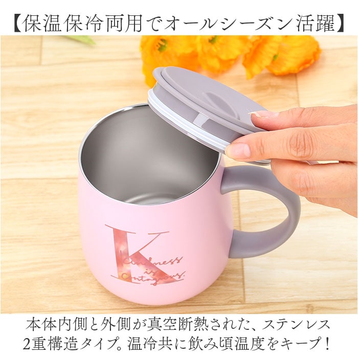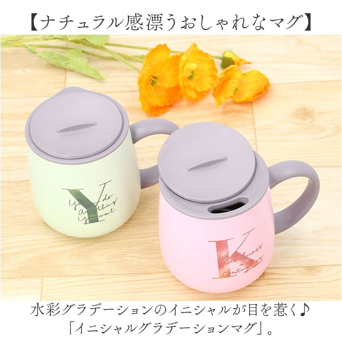 | 商品説明 | 【ナチュラル感漂うおしゃれなマグ】水彩グラデーションのイニシャルが目を惹く♪「イニシャルグラデーションマグ」。【特別感を演出し、気分もアップ!】自分のイニシャルはもちろん!大切な人や推しのイニシャルを選んでもOK☆【保温保冷両用でオールシーズン活躍】本体内側と外側が真空断熱された、ステンレス2重構造タイプ。温冷共に飲み頃温度をキープ!【やけどや結露を防いで快適】熱々の飲み物を入れても外側が熱くならず、冷たいドリンクも結露で周りを濡らす心配が不要。【仕事や作業のお供に嬉しいフタ付き】ほこりなどをカバーし、温度キープにも効果的。パッキン付きで、デスクの上でもこぼれにくい!【フタをしたまま直飲みOK】飲み口は簡単開閉できるスライド式。フタをしたまま水分補給♪【自宅やオフィス、アウトドアに☆】仕事中にはもちろん!アウトドアシーンなどでも使いやすい容量300mlサイズ。【サッと手に取れるハンドル】指を掛けやすい、柔らかな丸みのあるハンドル付き。フタと同じカラーで統一感をプラス。【大切な方へのギフトにもぴったり】イニシャルと共に、それぞれ異なるメッセージをプリント。贈り物にも喜ばれるアイテム☆ |