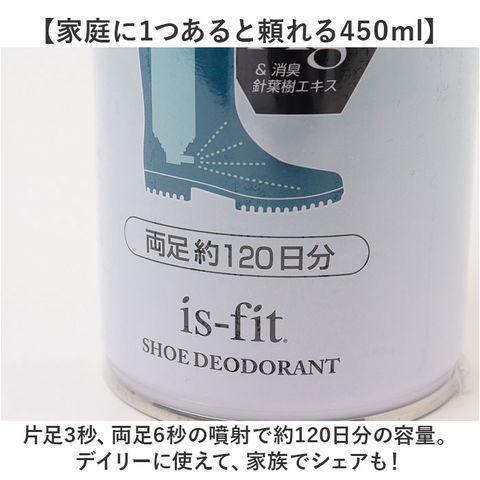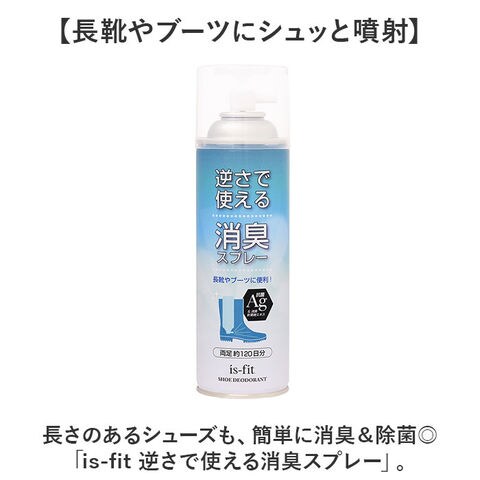 | 商品説明 | 【長靴やブーツにシュッと噴射】長さのあるシューズも、簡単に消臭&除菌◎「is-fit 逆さで使える消臭スプレー」。【つま先までしっかり噴射できて便利】逆さで使用OK!奥までしっかりスプレーでき、パウダー配合で靴の中もサラサラ感が持続。【ニオイさよなら、いつも清潔】抗菌効果のあるAgと、消臭効果のある針葉樹抽出成分。嫌なニオイに働きかけ菌の増殖も防ぐ◎(※)靴内のあらゆる菌を除菌するものではありません。【家庭に1つあると頼れる450ml】片足3秒、両足6秒の噴射で約120日分の容量。デイリーに使えて、家族でシェアも! |