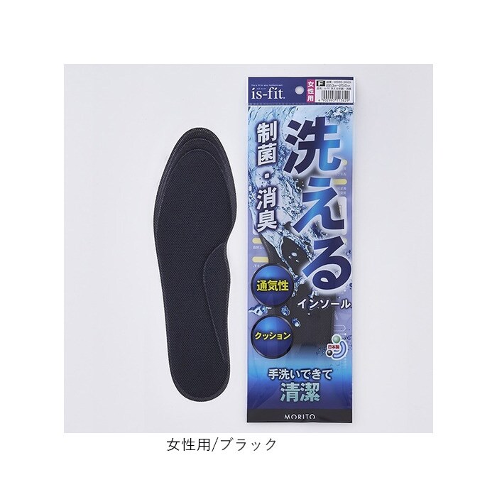 is-fit 洗える制菌消臭インソール【ブラック】【女性用(22-25cm)】