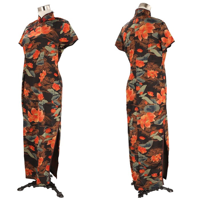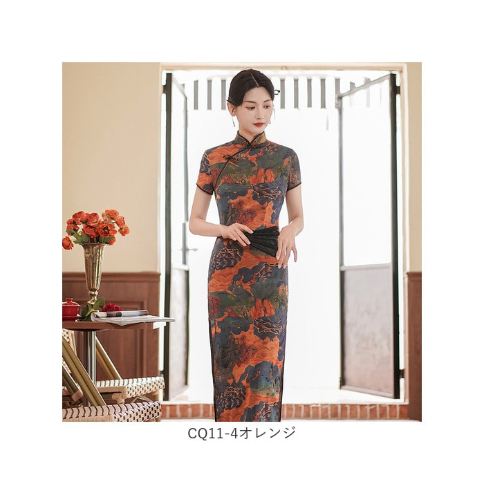 チャイナドレス 半袖 j3082cq11【CQ11-4オレンジ】【Mサイズ】