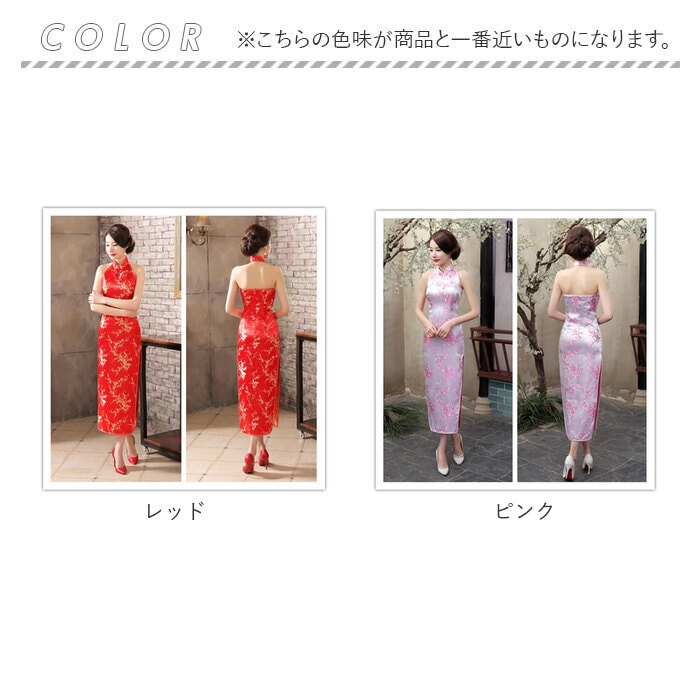 | 商品説明 | みんなの視線を釘付け♪目を惹くチャイナドレスが新登場。【上品さを感じさせるデザイン】程よく光沢のある生地に、鮮やかな刺繍デザインを施した1着。定番チャイナドレスの雰囲気漂う仕上がり。【足元まで覆うロング丈】両サイドにスリットが入った、ロング丈タイプ。高めのヒールと合わせれば、スタイルアップが叶うアイテム♪【着脱カンタン】バックファスナー&ホッを留めるだけ◎(※首元のチャイナボタンは飾りです。)【背中をキレイ魅せ】大胆なバックスタイルを作り出す、ホルターネック仕様。後ろ姿も美しく♪【イベントでも】ハロウィンやコスプレイベント、パーティーなどで大活躍!【選べるカラー】カラーごとに雰囲気が異なるので、なりたいイメージに合わせてチョイスして!ご友人と色違いで揃えるのもおすすめ。 |