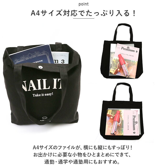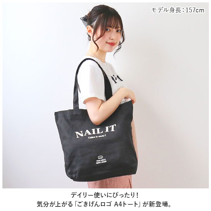 | 商品説明 | デイリー使いにぴったり!気分が上がる「ごきげんロゴ A4トート」が新登場。【存在感のあるごきげんロゴ】ついニコッと笑顔になれる♪ポジティブなロゴが目を惹くトート。ロゴによって異なるフォントもポイント。【便利なワンタッチ開閉】開口部は開閉がスムーズなマグネットボタン式。中身のこぼれ落ちもガード。【A4サイズ対応でたっぷり入る!】A4サイズのファイルが、横にも縦にもすっぽり!お出かけに必要な小物をひとまとめにできて、通勤・通学や通塾用にもおすすめ。(※B4サイズも縦向きに収まりますが、マグネットボタンは閉まりません。)【小物が迷子になりにくい!】細々したものを入れておける内ポケット付き。【使い勝手ばっちり】丈夫なコットンキャンバス地を使用しているから、ガシガシ使っても大丈夫!推し活バッグとしてもおすすめ☆【選べるバリエーション】お好みのワードやカラーからチョイス。シンプルなコーデのアクセントにも♪【ポケット仕様】内側:ファスナーポケット×1 |