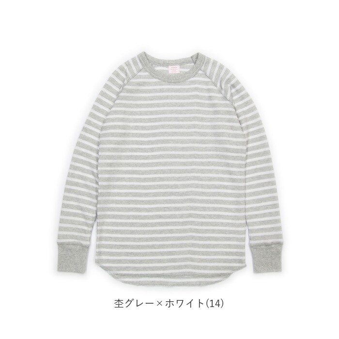 JEMORGAN レディース ワッフルボーダーラグランロンT(パック入り)【杢グレー×ホワイト(14)】