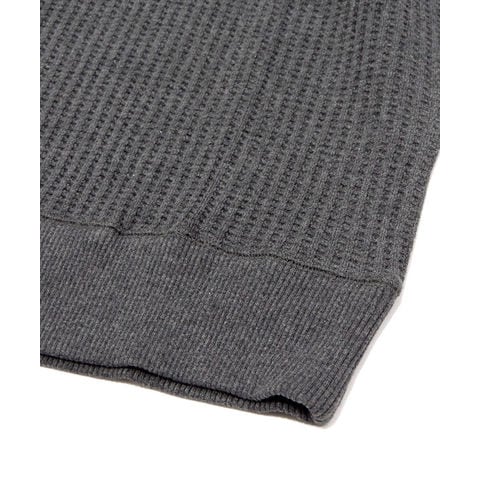 | 商品説明 | JEMORGANを代表するヘビーウェイトなビッグワッフルを使用したクルーネックで、ロングセラーアイテム。スウェットのように気軽に1枚でも、ニットのようにシャツと合わせてきれい目な着こなしなど、幅広く使用可。襟・裾・袖口はリブ仕様で防寒性にも優れたしっかりとした仕上がりで、ポリエステルを20%混紡する事でワッフル素材特有の型崩れを改善。 |