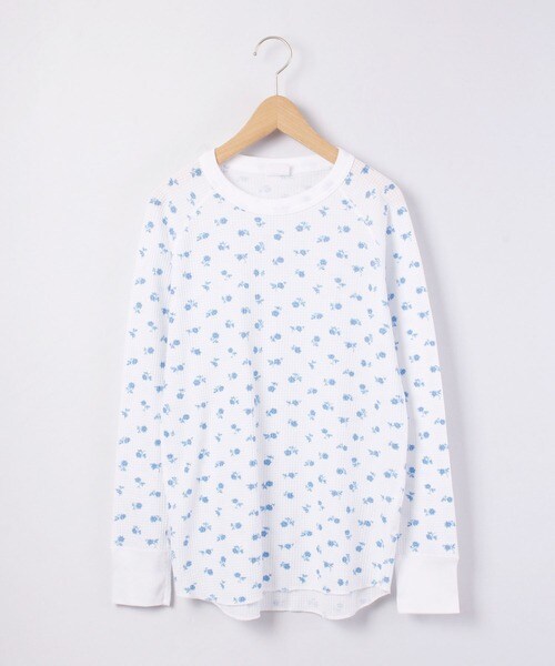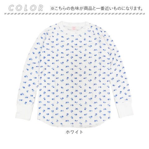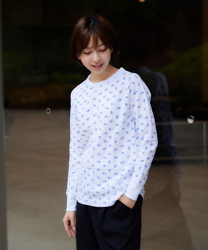 JEMORGAN レディース ワッフル花柄ラグランロンT(パック入り)【ホワイト】