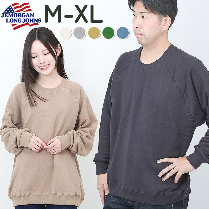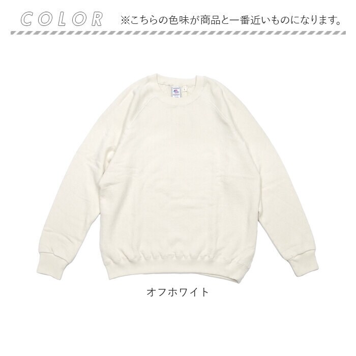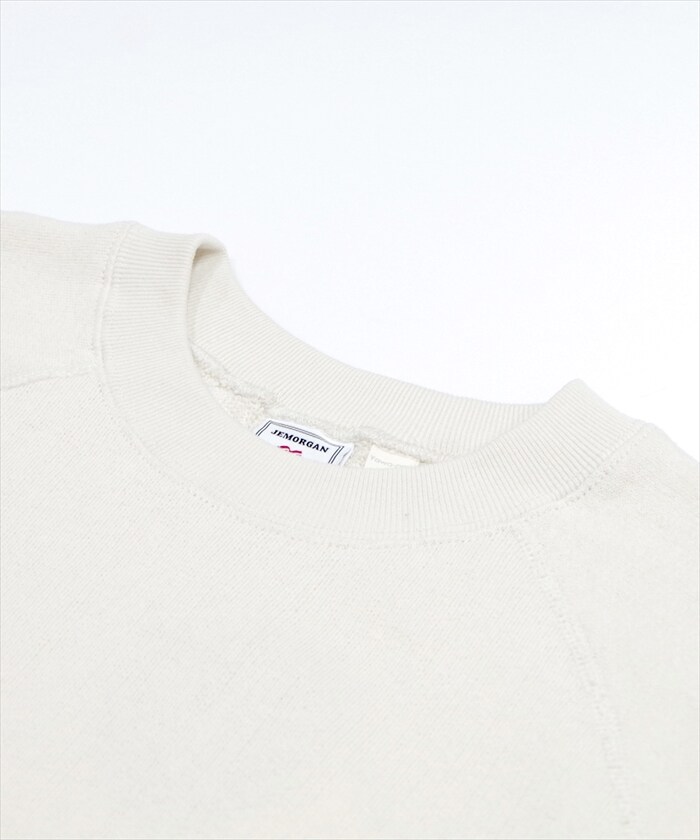 JEMORGAN 柔編み裏毛ラグランスウェットクルー【オフホワイト】【Lサイズ】