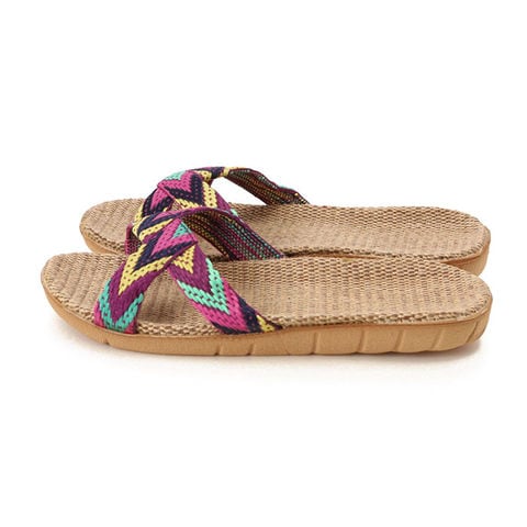| 商品説明 | トライバル柄のクロスベルトが印象的!リネン素材の夏用スリッパが新登場!インソールは粗めの織りで、サラッとした素足に気持ちの良い感触。蒸れやすい季節でも、汗によるベタつきを防いでくれる。アウトソールには軽量なEVA素材を使用。適度なクッション性と足裏にフィットする立体構造が、心地よい履き心地を実現。足の甲を覆うクロスベルトはエキゾチックな編み込み模様で、リゾート感たっぷりなデザイン♪おうちの中だけじゃなく、プールサイドなどちょっとしたアウトドアなら外履きも出来ちゃう。カラフルなのに大人っぽいお洒落なカラーバリエーション。夏らしいデザインと素材感を楽しんで! |