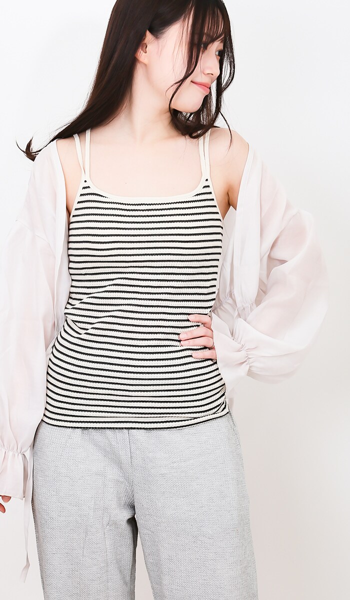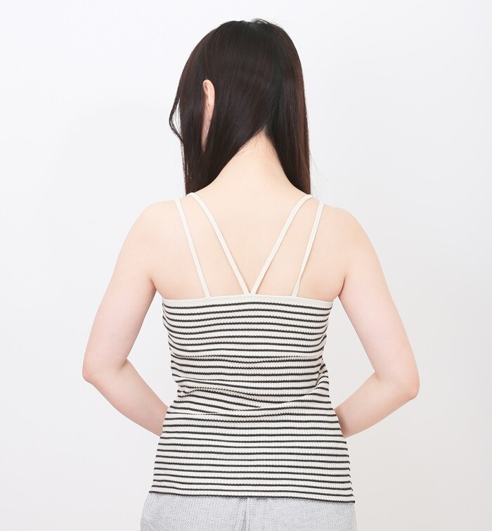 JEMORGAN ボーダーブラキャミソール(パック入り)【ナチュラル×杢チャコール(05)】