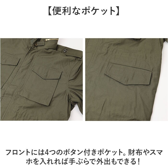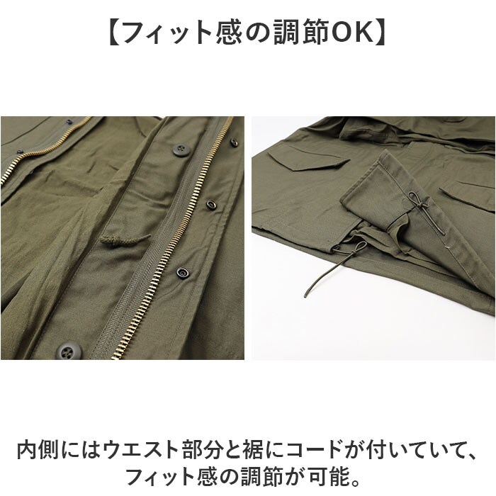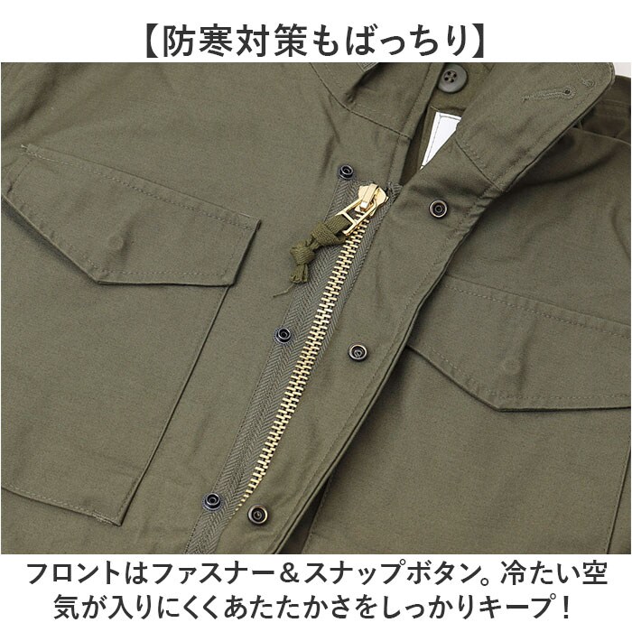 | 商品説明 | 【本格的なミリタリースタイル】機能性とファッション性を兼ね備えた「USタイプ M65フィールドジャケット Revival Model」【寒冷地仕様のこだわりジャケット】M-65フィールドジャケットとは、1965年にアメリカ軍で採用された戦闘服。【防寒対策もばっちり】フロントはファスナー&スナップボタン。冷たい空気が入りにくくあたたかさをしっかりキープ!【防寒性をさらにプラス】内側は裏地付きの二重構造。手持ちのインナーが取り付けできるボタン付き。【機能性も抜群】襟元と袖口の面ファスナーテープ、袖口の内側には手を保護してくれる角型フラップ付き。【隠しフード付き】襟裏のファスナーを開くと中のフードを取り出すことができる。【フィット感の調節OK】内側にはウエスト部分と裾にコードが付いていて、フィット感の調節が可能。【便利なポケット】フロントには4つのボタン付きポケット。財布やスマホを入れれば手ぶらで外出もできる!【幅広いシーンで活躍】ワンカラーで落ち着きのあるデザイン。様々なボトムスとも相性が良く、幅広いコーデに対応。 |