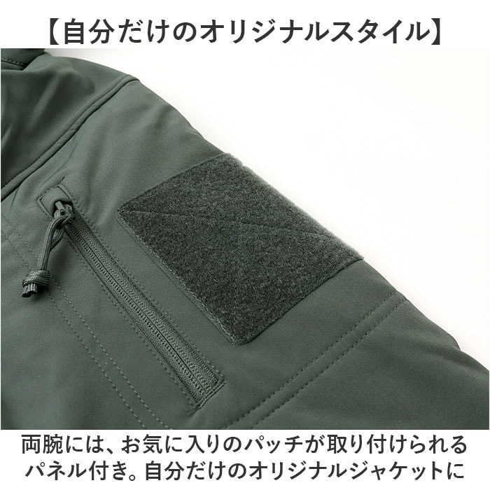 | 商品説明 | 【本格的なミリタリースタイル】機能性とファッション性を兼ね備えた「タクティカル SNPジャケット ソフトシェル」【機能性抜群のこだわりジャケット】防風性・保温性・透湿性が高く、軽い着心地のジャケット。秋・冬・春とロングシーズン活躍。【防寒対策もばっちり】フロントはYKKのダブルファスナー仕様。裏地に起毛素材を使用し、温かさをしっかりキープ!【通気性抜群で快適な着心地】ポケット裏はメッシュ素材、脇にファスナー式のベンチレーションシステムを搭載。【フィット感の調節OK】袖口の面ファスナーテープ、内側の裾にコードが付いていて、フィット感の調節が可能。【隠しフード付き】襟裏のファスナーを開くと中のフードを取り出すことができる。【自分だけのオリジナルスタイル】両腕には、お気に入りのパッチが取り付けられるパネル付き。自分だけのオリジナルジャケットに【便利なポケット】背面下部の大きなポケット、フロントや袖、内側にもポケットを多数配置。手ぶらで外出もOK!【どこでも音楽が楽しめる!】ポケットの内側にはイヤホンホールがあり、アクティブシーンでも音楽が楽しめる!【幅広いシーンで活躍】ソフトな手触りでストレッチ性があり動きやすさ◎どんなボトムとも相性抜群のシンプルデザイン |