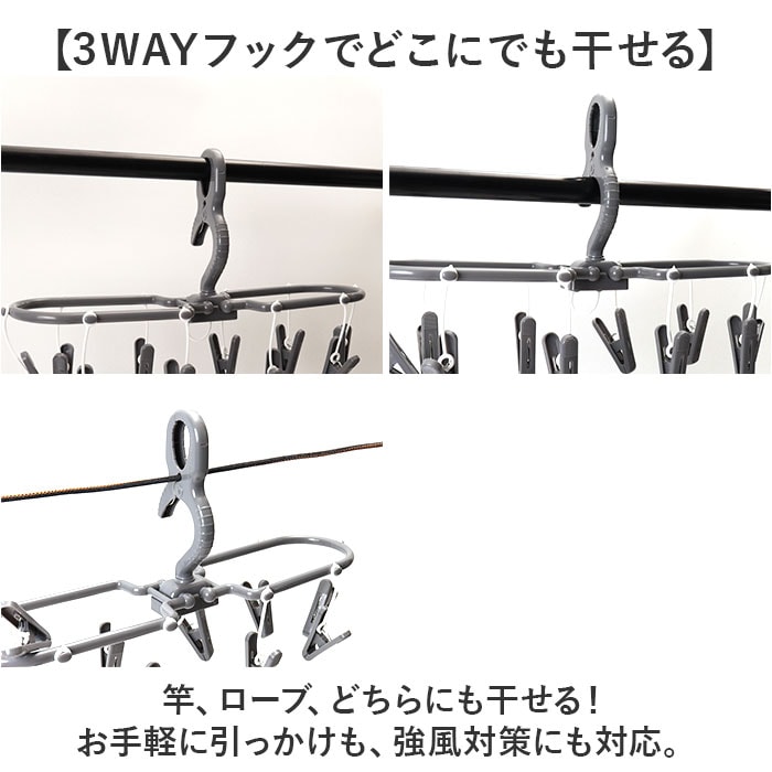 | 商品説明 | 【ジーンズのウエストが早く乾く!】コンパクトサイズで扱いやすく、靴下などの小物も干せる!ジーンズ&小物干し3本組が登場。【ジーンズやスラックスのお洗濯に】乾きにくいウエスト周りを広げて干せ、風通りをUP!生乾き臭の予防や時短に役立つアイテム。【ぐるりと配置されたピンチ】片手で持てる扱いやすいサイズ。引っかけループ付きでコンパクトに収納。旅行などで携帯もOK【ロック回転クリップで干しやすい】お好みの干しやすい向きに、45度ごとにロックできる!クルクル回る煩わしさを解決◎【3WAYフックでどこにでも干せる】竿、ローブ、どちらにも干せる!お手軽に引っかけも、強風対策にも対応。【まとめ洗いもできる3本セット】まとめ洗い時や、小物干しと併用ができる嬉しい3本セット。ストック用にも◎ |