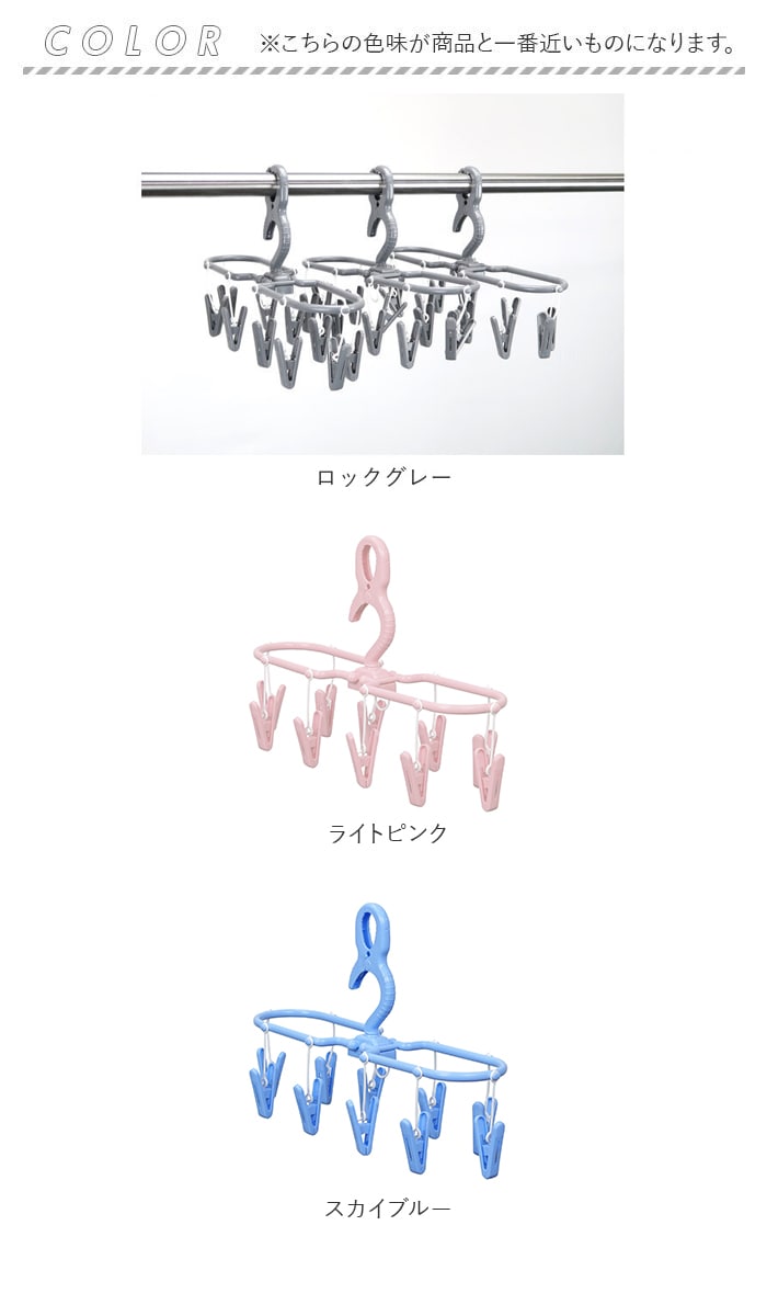 | 素材 | [グリップ、ピンチ、本体]ポリプロピレン [吊り紐]ポリエチレン [バネ]スチール |