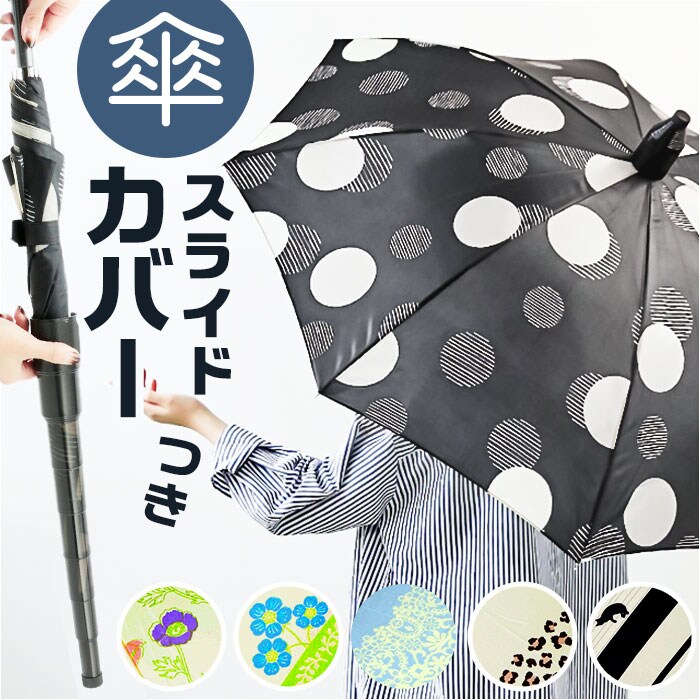 | 商品説明 | 地球環境にも人にも優しい傘 ECOPPA スライドカバー付ジャンプ傘 が新発売♪【環境に優しい】店頭の傘用ビニール袋を使わずにすみ、傘袋、ビニール削減に協力できてとってもエコ。【洋服や床が濡れるのを防止】混雑した電車やバスの中でも自分や周りの洋服やバッグが濡れずに快適。お店では傘立てやビニール傘袋がなくてもそのまま持ち込めるのも嬉しいポイント。【サッと装着完了】傘を畳んでスライドカバーを上げれば、濡れた傘をカバー。傘を使うときは下までカバーを下し、そのまま傘を広げて使える♪荷物が多いときでも、片手で上げ下げ出来ちゃう◎【お手入れ簡単】溜った水は先端のキャップを外せば水抜き完了。お手入れの簡単さも魅力的。【雨からしっかりカバーできる60cm】親骨の長さ約60cm、傘生地の直径約104cmと一般的なビニール傘よりもやや大きめ、肩先が濡れにくい安心のサイズ感。【ワンタッチで開く】片手が荷物で埋まっている時もすぐに開けるジャンプタイプ。【簡単な留めバンド】サッとまとめて留められる太めな面ファスナーテープベルトを留め具に採用。【気持ち華やぐ大人カラー】傘の波の中でも個性が際立つアニマル、ボタニカルデザインなどバラエティ豊富にラインナップ。シンプルなデザインが、全ての世代の女性のファッションに素敵にフィット。 |