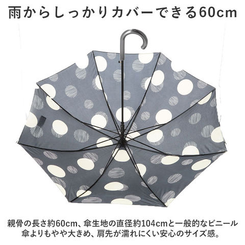 | サイズ | [親骨の長さ]約60cm/[直径]約104cm/[全長]約84cm ※サイズは当店計測の実寸サイズです。実際の商品ならびにメーカー表記サイズとは多少の誤差が生じる場合がございます。あらかじめご了承ください。 |