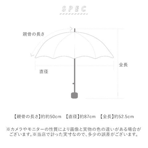 | サイズ | [親骨の長さ]約50cm/[直径]約87cm/[全長]約52.5cm [収納時の長さ]約18cm [収納時の幅]約7cm 【手提げカバン時】 [縦]約18cm/[横]約21.5cm/[持ち手]約36cm ※サイズは当店計測の実寸サイズです。実際の商品ならびにメーカー表記サイズとは多少の誤差が生じる場合がございます。あらかじめご了承ください。 |