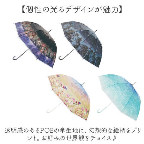 | 商品説明 | 【雨の日も晴れやかな気分でお出かけ】おしゃれに持ち歩けて、憂鬱な雨の日もお出かけが楽しくなる♪「エモーシブルアンブレラ」。【あの日、感動した景色に没入♪】エモーショナル(感動的)と、イマーシブル(没入感)を掛け合わせたようなエモーシブル☆【ワンタッチでラクラクオープン】片手でサッと開きやすいジャンプ式。荷物を持っている時も、スマートに対応。【しなやかで丈夫なグラスファイバー】親骨に弾力性があり折れにくい、グラスファイバーを使った8本骨。軽やかで錆にも強い!【サクッと留められるボタン式バンド】傘生地を留めるバンドは、バチンっと留めやすいスナップボタン式。【個性の光るデザインが魅力】透明感のあるPOEの傘生地に、幻想的な絵柄をプリント。お好みの世界観をチョイス♪ |