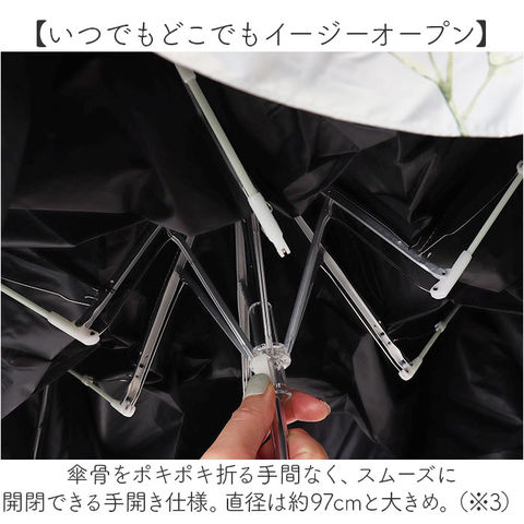 | サイズ | [親骨の長さ]約55cm/[直径]約97cm/[全長]約54cm [収納時の長さ]約23.5cm [収納時の幅]約5cm ※サイズは当店計測の実寸サイズです。実際の商品ならびにメーカー表記サイズとは多少の誤差が生じる場合がございます。あらかじめご了承ください。 |