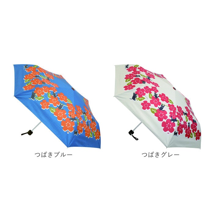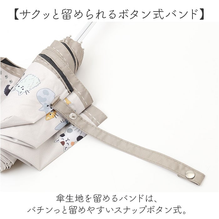 ねこまみれ 晴雨兼用折りたたみ傘【つばきグレー】