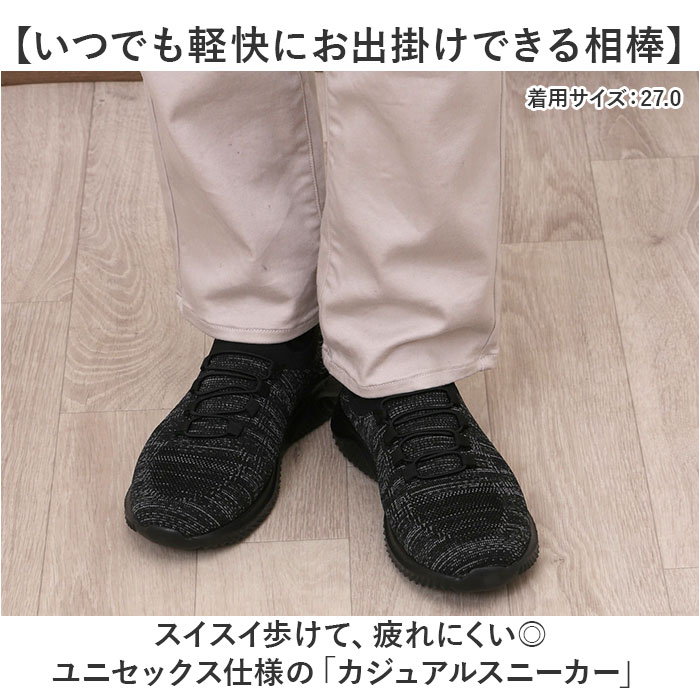 | 商品説明 | 【いつでも軽快にお出掛けできる相棒】スイスイ歩けて、疲れにくい◎ユニセックス仕様の「カジュアルスニーカー」。【軽やかでストレスフリーな履き心地】驚きの軽さを実現し、足への負担を軽減。足さばきがスマートで、アクティブに動く日にも最適。【スッと足入れできて脱ぎ履き簡単】靴紐は伸縮性のあるゴム素材。靴紐を結ぶ手間なく、脱ぎ履きがスムーズで心地よくフィット。【足当たりが優しく靴ズレをガード】履き口はやや伸縮性があり、かかとまわりは柔らかな素材。窮屈差を感じにくく、靴ズレも防ぐ◎【安定感のある歩行をサポート】つま先部分が上向き形状で、蹴り上げやすくつまずきにくい!底面凹凸加工のフラットソール。【足元をさりげなくお揃いに☆】カジュアルコーデに素敵にマッチ。豊富なサイズ展開で、夫婦やカップルお揃いもおすすめ。 |